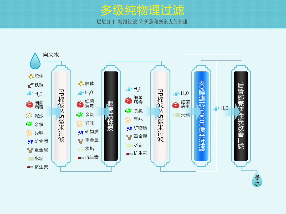 产品描述:多功能触控面板,智能屏显,操作简单,功能强大,滤芯寿命计算制动功能提醒,可手机APP远程控制;内置水箱+超强五级过滤,经典时尚设计既耐看又实用,充分考虑了家庭用水需求,卡接式滤芯可在不停电的情况下直接更换滤芯;超低1:1废水比节水又环保